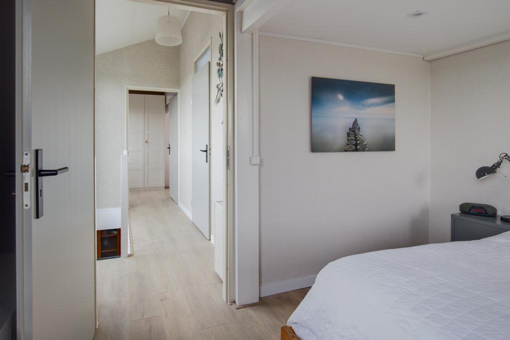 Via de overloop heeft u toegang tot twee slaapkamers en de badkamer. Niet te vergeten bereikt u via hier ook het ruime dakterras gelegen op het Oosten. De slaapkamers en overloop zijn voorzien van dezelfde laminaatvloer als de rest van de woning. Zowel aan de voorzijde als aan de achterzijde bevindt zich een slaapkamer. De badkamer is ruim en voorzien van een douche, toilet, wastafel met meubel en een dakraam.